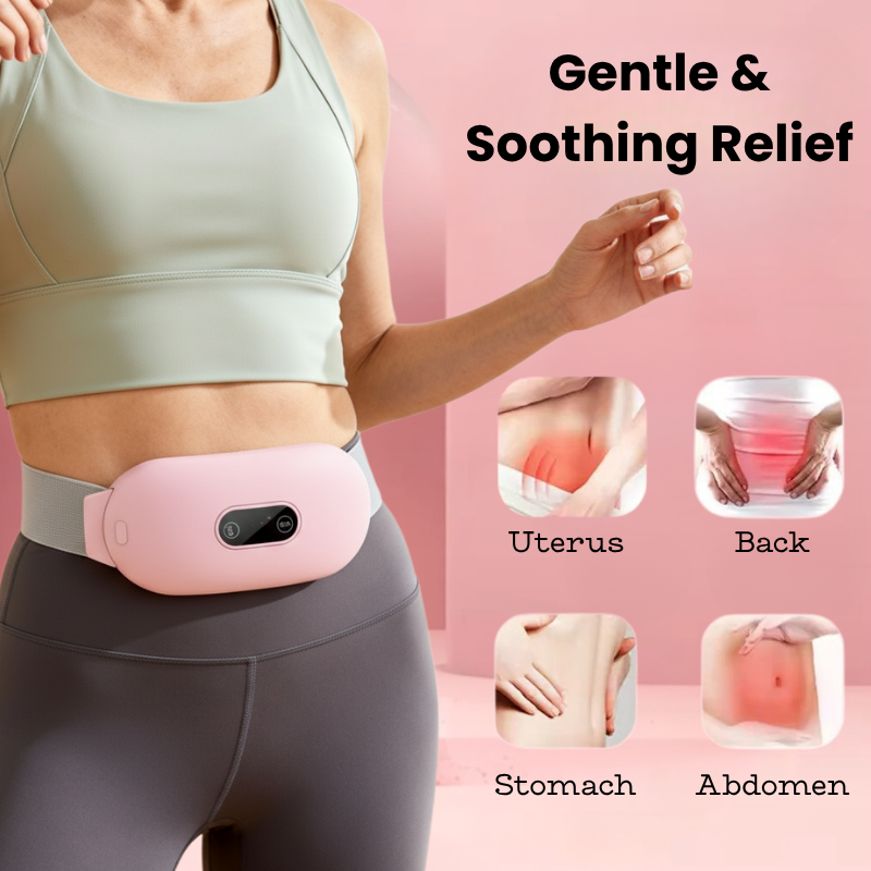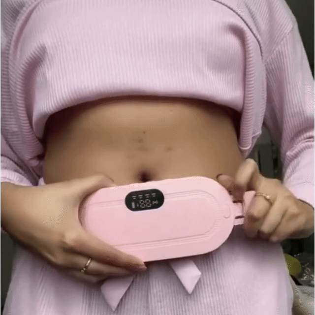 It uses heat, vibration, and pressure to target cramps and relieve pain.